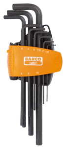 - Hexagonal tipped L-key set of 9 pieces, long in metric