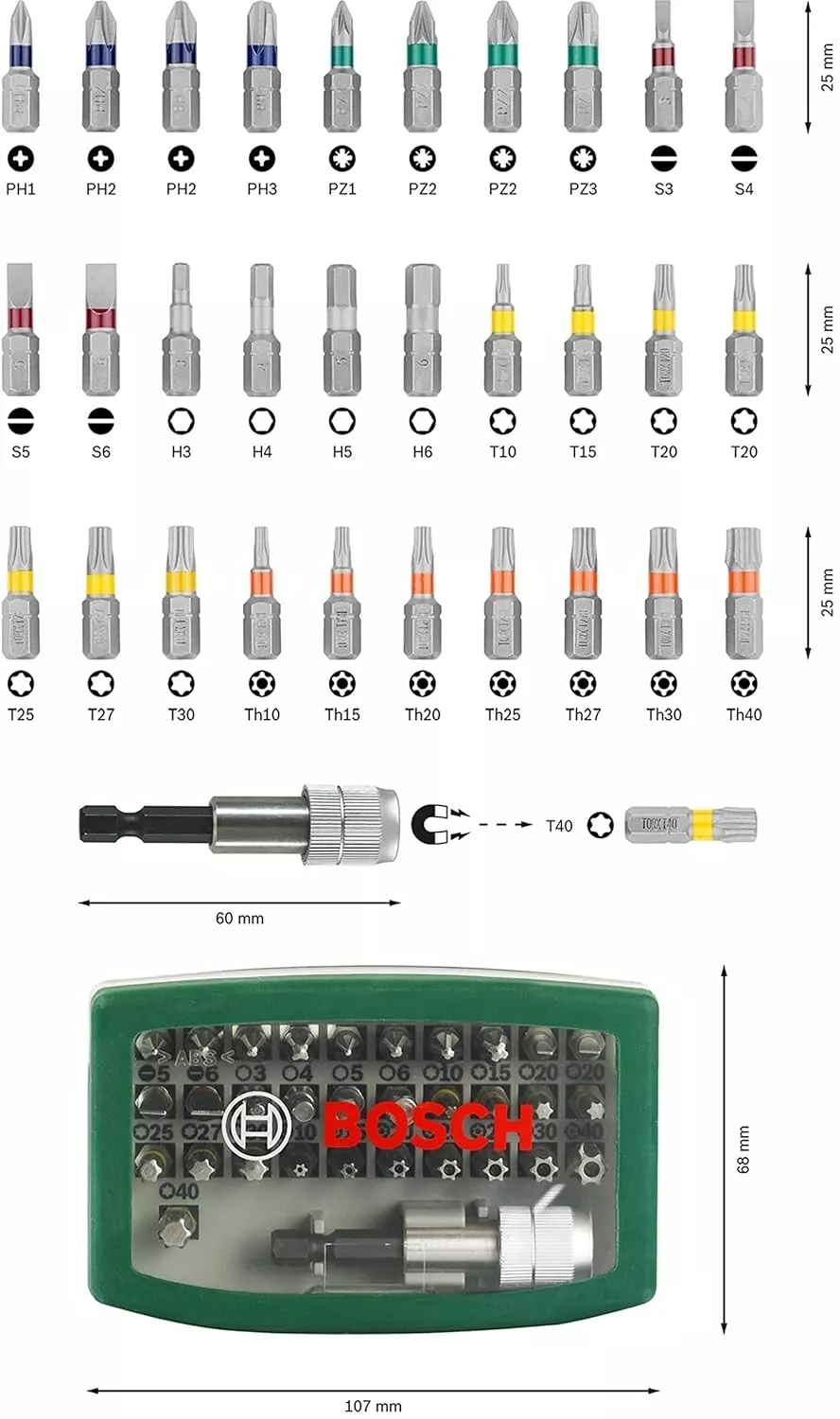 BOSCH 2607017063 Screwdriver bits, Set of 32 Pieces