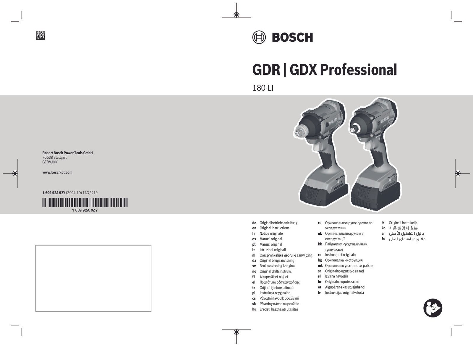 تتميز الأداة GDX 18V-180 Professional ببطارية أيونات ليثيوم، ودوران جهة اليمين – اليسار والسرعة المتغيرة.