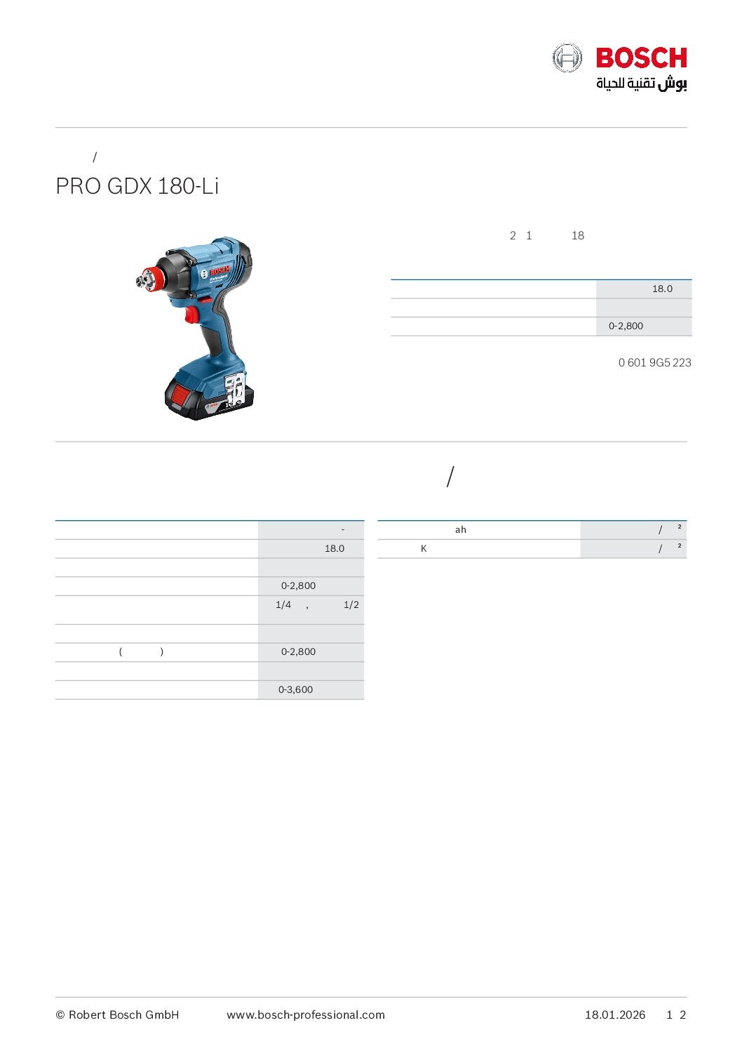 كتيب البيانات والمواصفات الفنيه pro-gdx-180-li-sheet