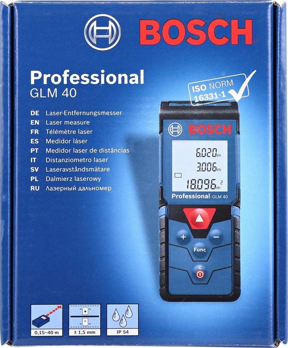 استفد من التشكيلة العريضة لأوضاع القياس في تصميم واحد مدمج لجهاز القياس بالليزر GLM 40 Professional. تتيح أداة القياس بسيطة الاستخدام جميع أوضاع القياس الهامة في جهاز واحد: فهي تتيح حسابات الحجم والسطح والطول القياسية بالإضافة إلى قياسات الارتفاعات بشكل غير مباشر. وتتميز الأداة بوحدة عرض مضيئة سهلة القراءة تُظهر آخر ثلاث نتائج للقياس للرجوع إليها بشكل سريع. كما يحتوي جهاز القياس بالليزر أيضا على وظيفة ذاكرة تقوم بحفظ آخر 10 قياسات لكفاءة استغلال الوقت أثناء الاستخدام.
