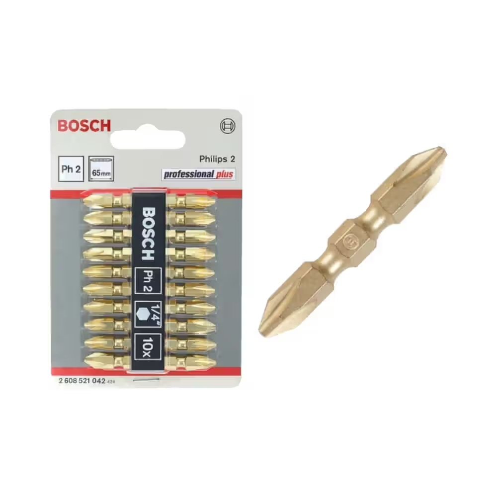 Bosch PH2 Double Ended 65mm Gold Screw Bits / Screwdriver bit set 10 psc 2608521042