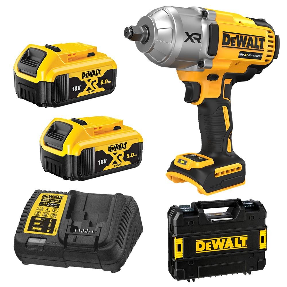 DEWALT DCF900P2T-GB 18V XR Brushless 1/2″ High Torque Impact Wrench Hog Ring 1396Nm with 2 x 5Ah Batteries in TSTAK