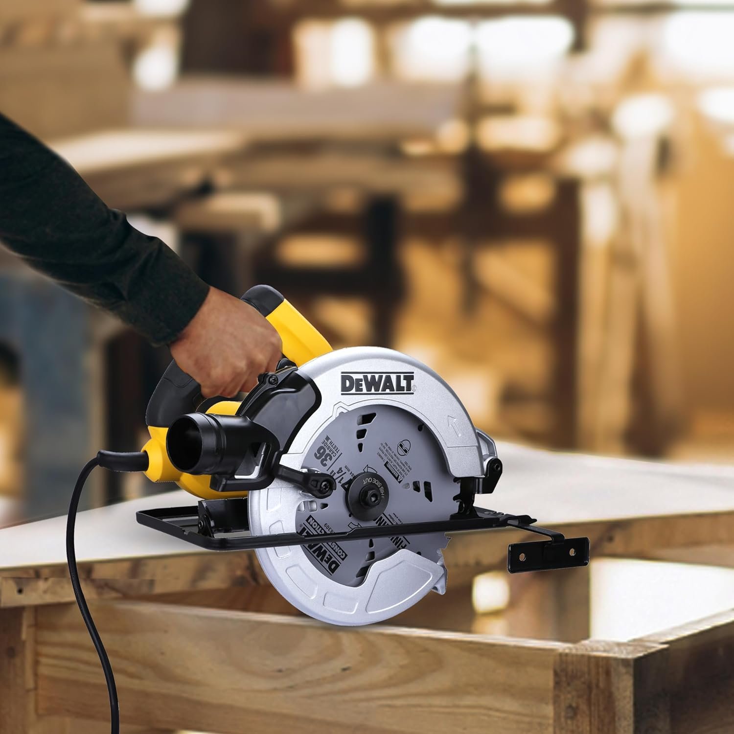 منشار دائري صينية 7.25 بوصة 1500 وات DEWALT موديل DWE5615-GB ، منشار دائري للتمزيق والقطع العرضي والمائل للأغراض العامة للخشب ومواد البناء الأخرى ، محرك عالي الطاقة 1500 وات يوفر أداء قطع متزايد ، منشار دائري صغير الحجم وخفيف الوزن وسهل الاستخدام بعمق قطع 68 مم ، يقوم منفاخ الغبار بإزالة الغبار والحطام من خط القطع ، التوافق المباشر مع نظام DEWALT AirLock للتوصيل السهل والآمن بخرطوم الاستخراج ، منفذ فعال لاستخلاص الغبار لتقليل جزيئات الغبار المحمولة بالهواء عند توصيله بوحدة استخراج الغبار ، توازن مثالي لتشغيل آمن بدون تعب ، مقبض إضافي لقطعتين آمنتين.