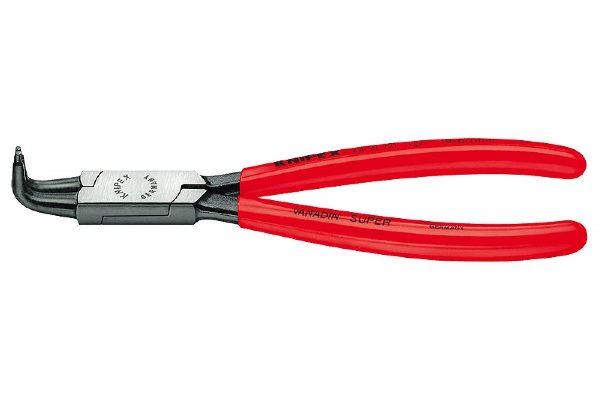 With the Knipex 44 21 J21 the handle and tips are forged in one piece, which produces correspondingly high durability. The very accurately twisted tips are also machined so they slant inwards slightly, so that the circlips are held firmly on the tips of the pliers.