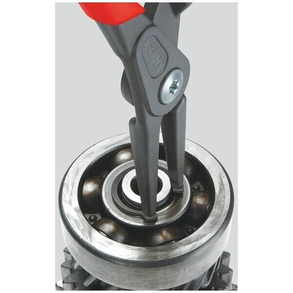 In industry, as in manual trades, economically efficient work processes are key to a company’s success. Assembly time = production time. Precision pliers save time. Thus, profits can increase through the use of superior tools. Professional tools like the Knipex 49 11 A2 precision circlip pliers enable circlips to be installed and removed from shafts in the shortest possible time. Every step works because the extremely stable, cold-formed tips immediately grip the mounting holes of the circlip and hold the circlips securely on the pliers without twisting. Precise working practices save time.