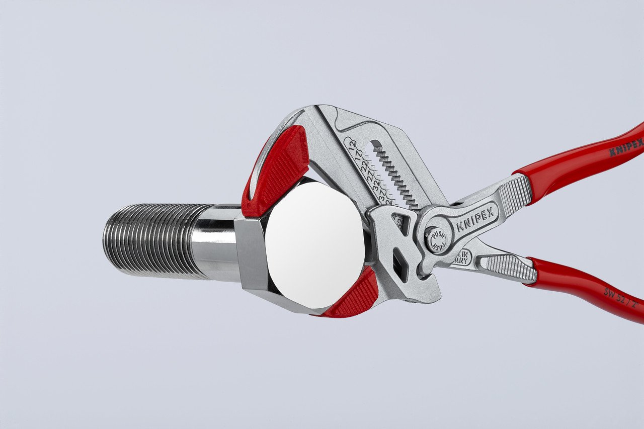 The revised Knipex pliers have two lasered scales: metric on the front, imperial on the back. This means that you can also adjust the grip distance in advance for difficult to reach workpieces.