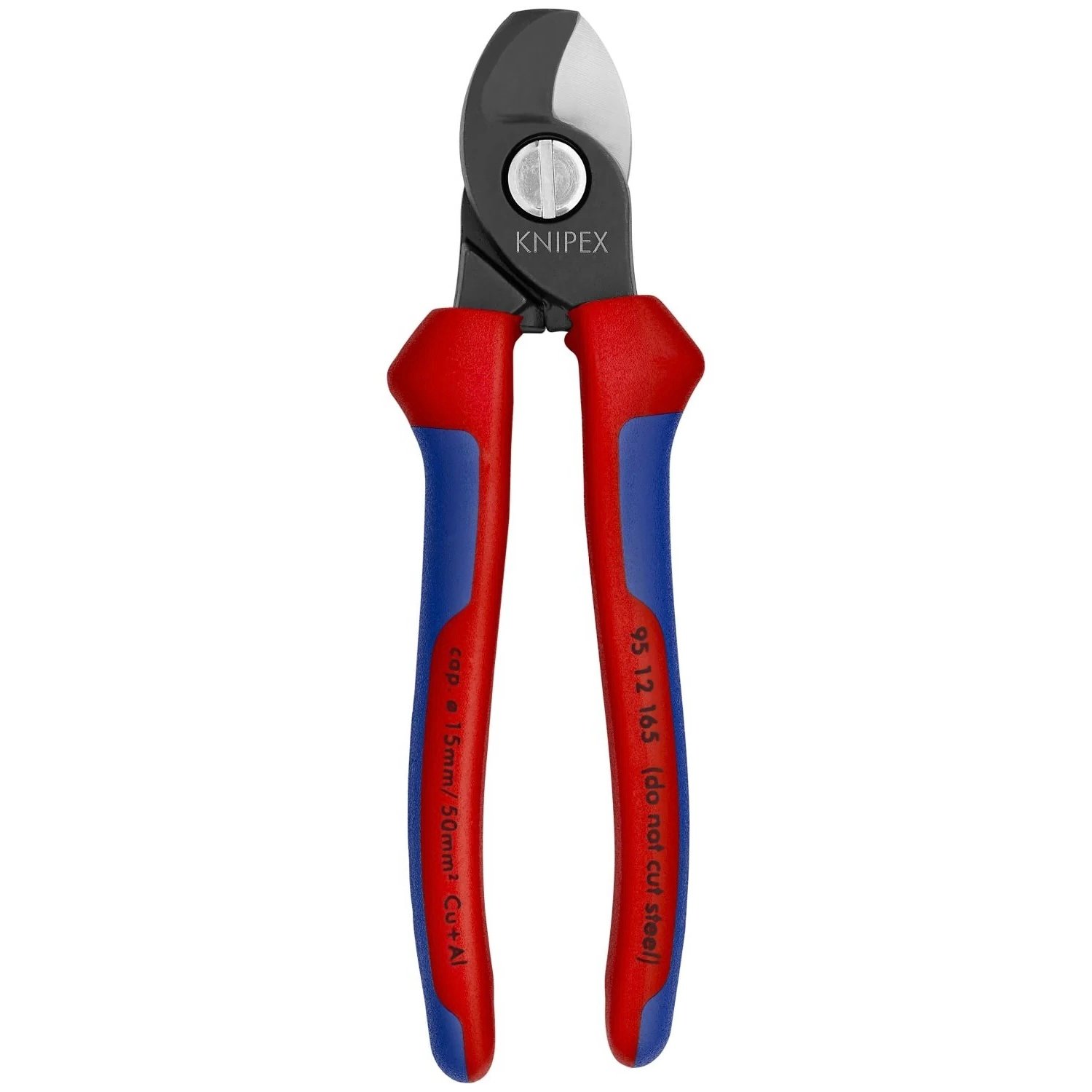 By contrast, the cable shears from Knipex cut with a scissors action. This means they are therefore excellent for shortening cable, e.g. in house wiring work, such as NYM-J 3×1.5 mm or NYM-J 5×2.5 mm and all other stranded and finely stranded Cu and Al cable up to 50 mm². Due to the nature of their cutting edges, cable shears should not be used to cut hard wire.