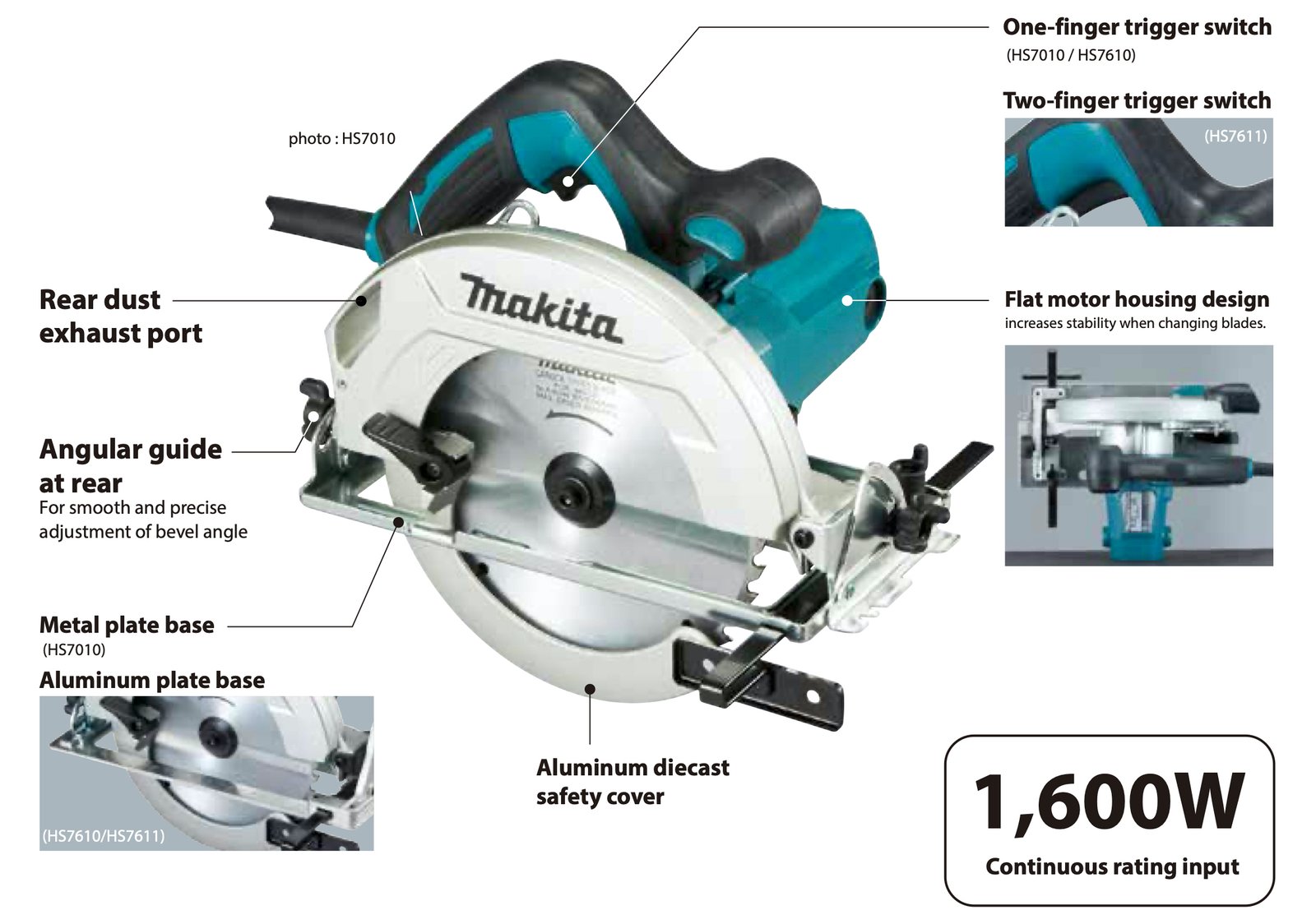 منشار صينيه ماكيتا 7.25 بوصة 1600 وات يعمل بصنية فيديا MAKITA HS7010