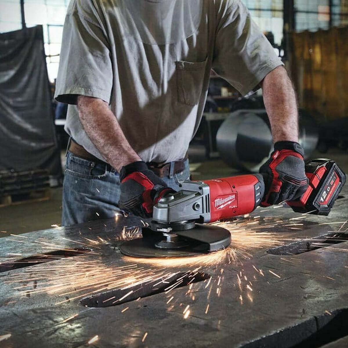 - The world’s first single 18V battery operated large angle grinder that delivers the power to grind, lighter than corded tools and makes up to 68 cuts per charge in 42 mm stainless steel pipe