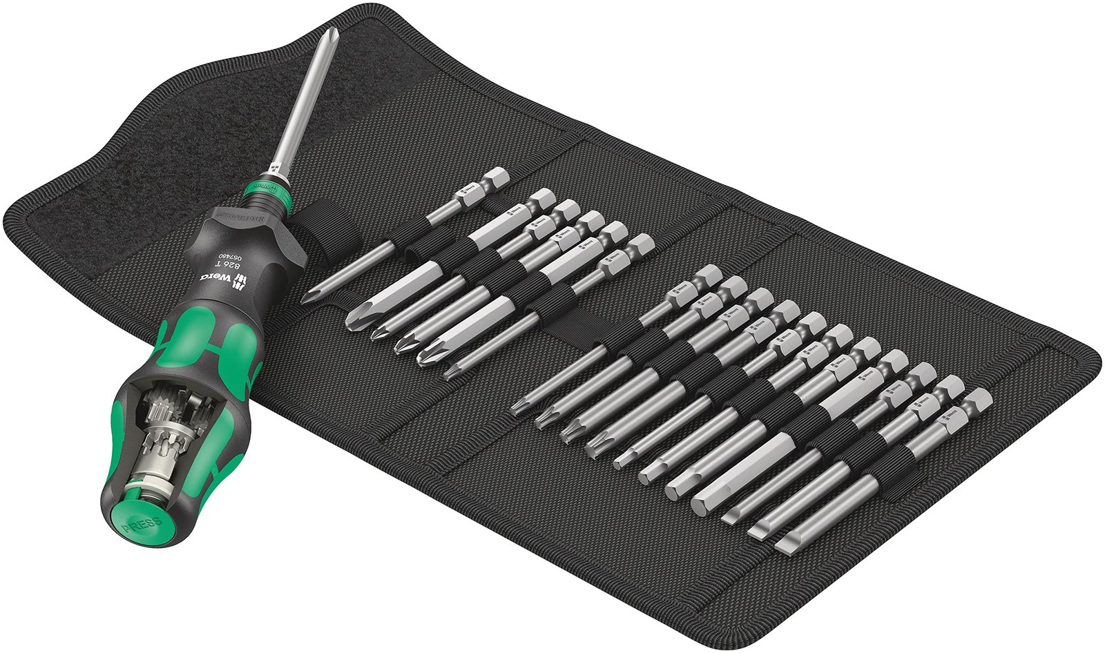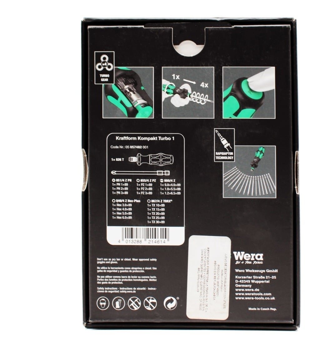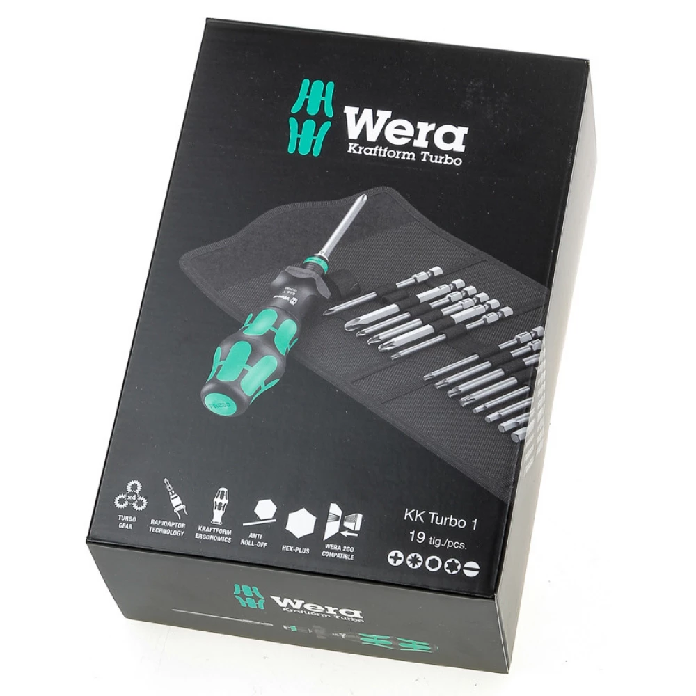 WERA Kraftform Kompakt Turbo 1 screwdriver handle with bit set in folding case 19-piece – 05057482001