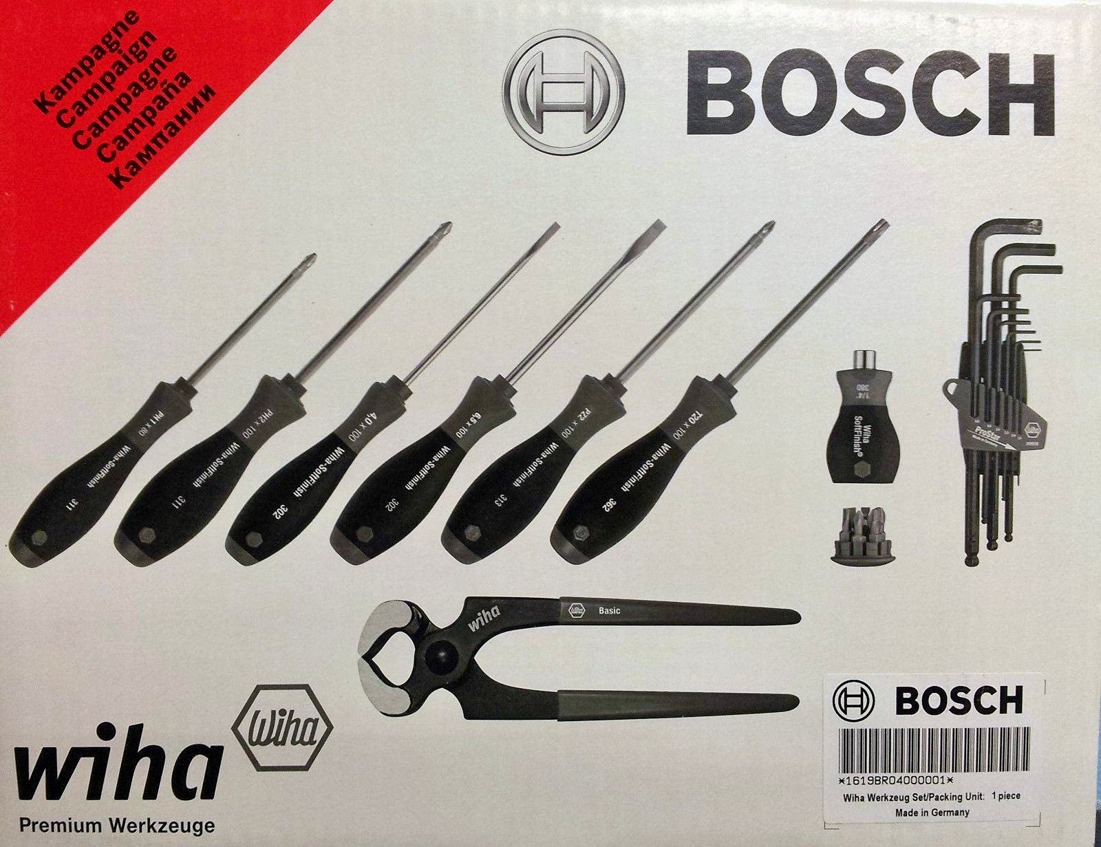 مجموعة أدوات مهنية ماوكة ويها صناعه الماني مصنعة لحساب شركة بوش الالمانة مكونة من طقم مفكات وكماشة وطقم النكي مفك لقم 1/4  بوصة