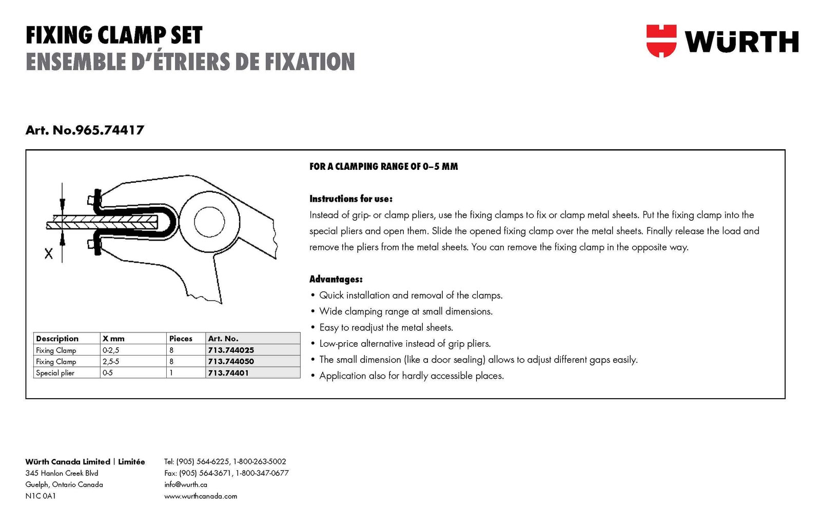 wurth 96574417 FIXING CLAMP SET